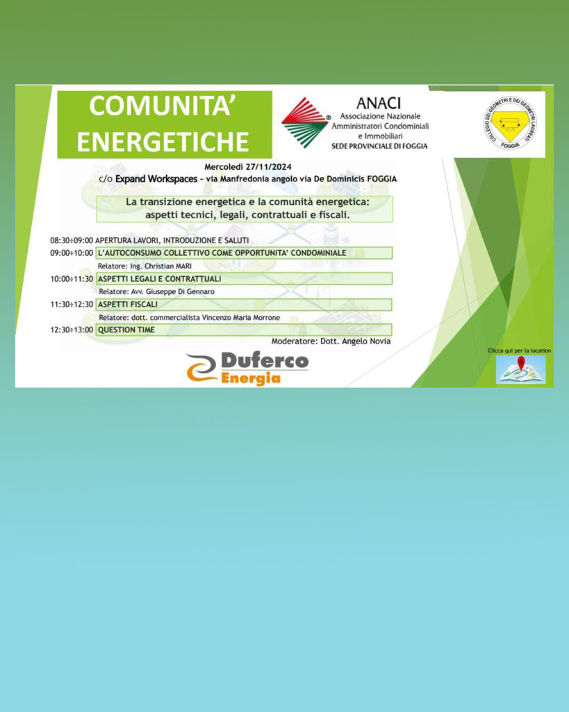 09:00-10:00 L’AUTOCONSUMO COLLETTIVO COME OPPORTUNITA’ CONDOMINIALE